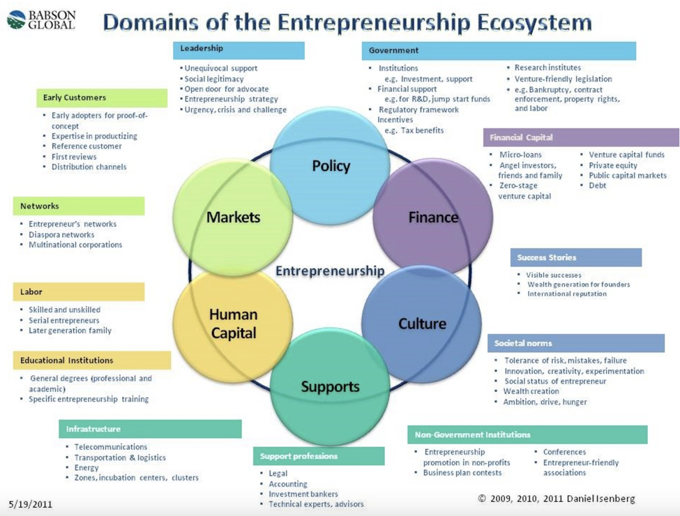 The role of the government is crucial in laying the foundation for a thriving entrepreneurship ecosystem. The focus of thePalestinian government – after taking into consideration the particularity of Palestine and the harsh reality of the Israelioccupation – lies in devising policies and introducing regulations and pioneering initiatives that will ensure theeffectiveness of the six entrepreneurship core domains that were theorized by the Babson Global Entrepreneurshipproject,namely culture, markets, human capital, finance, supports, and policy.