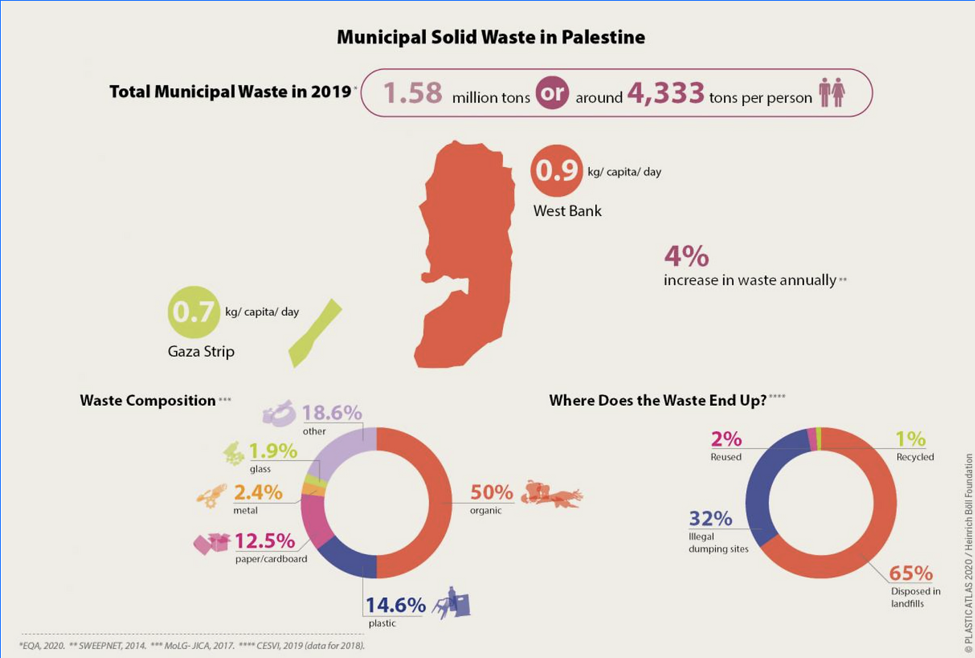 Palestinians in the West Bank and Gaza generate a significant amount of organic waste; around 50 percent of the 1.58million tons of daily municipal solid waste in the West Bank and Gaza is considered organic waste (790,000 tons).Organic waste from both households and the agricultural sector can be an important input to produce some of the mostessential products needed to establish a sustainable agriculture sector, such as animal feed and fertilizers.